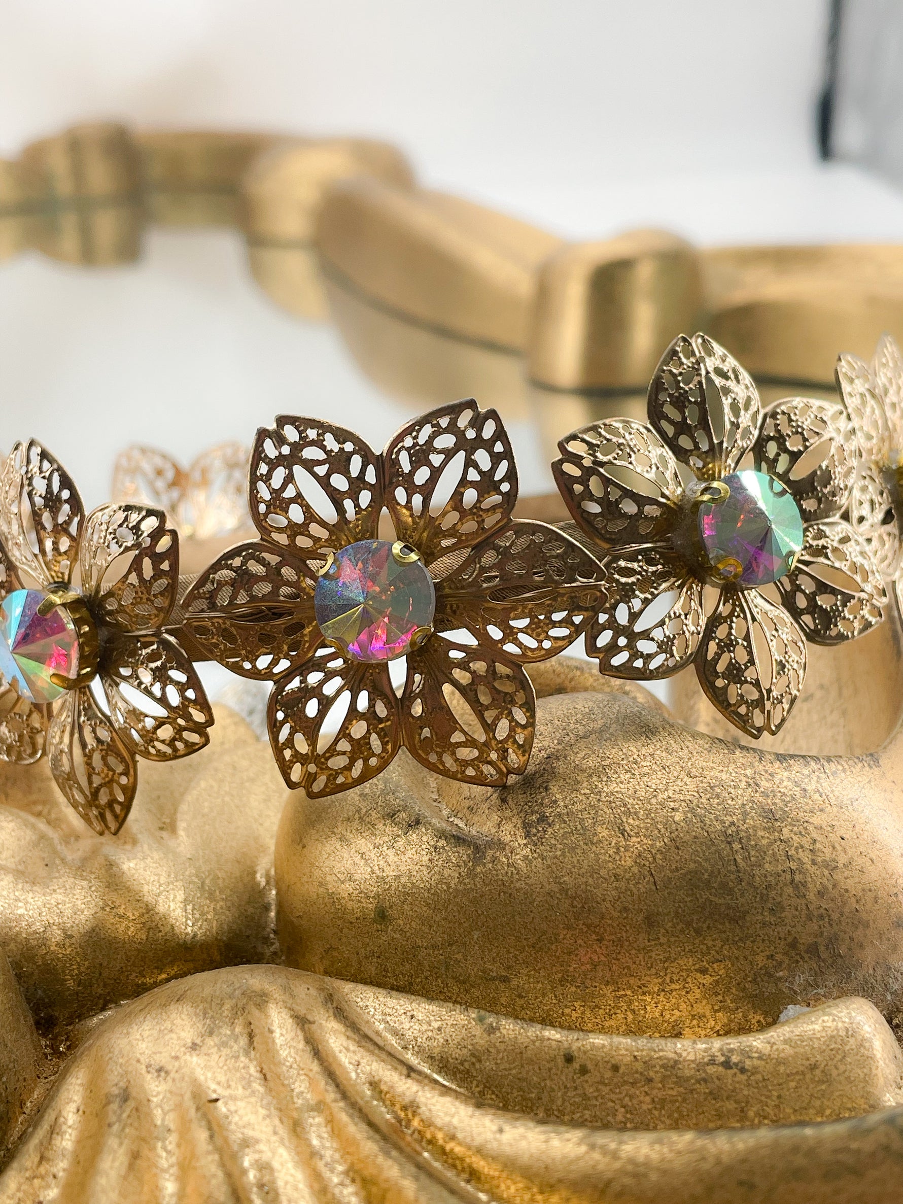 Floral Dream Garland – Vintage crystal rhinestone Flower Statement Headpiece | Bridal, Festival & Luxe Occasion Hair Accessory