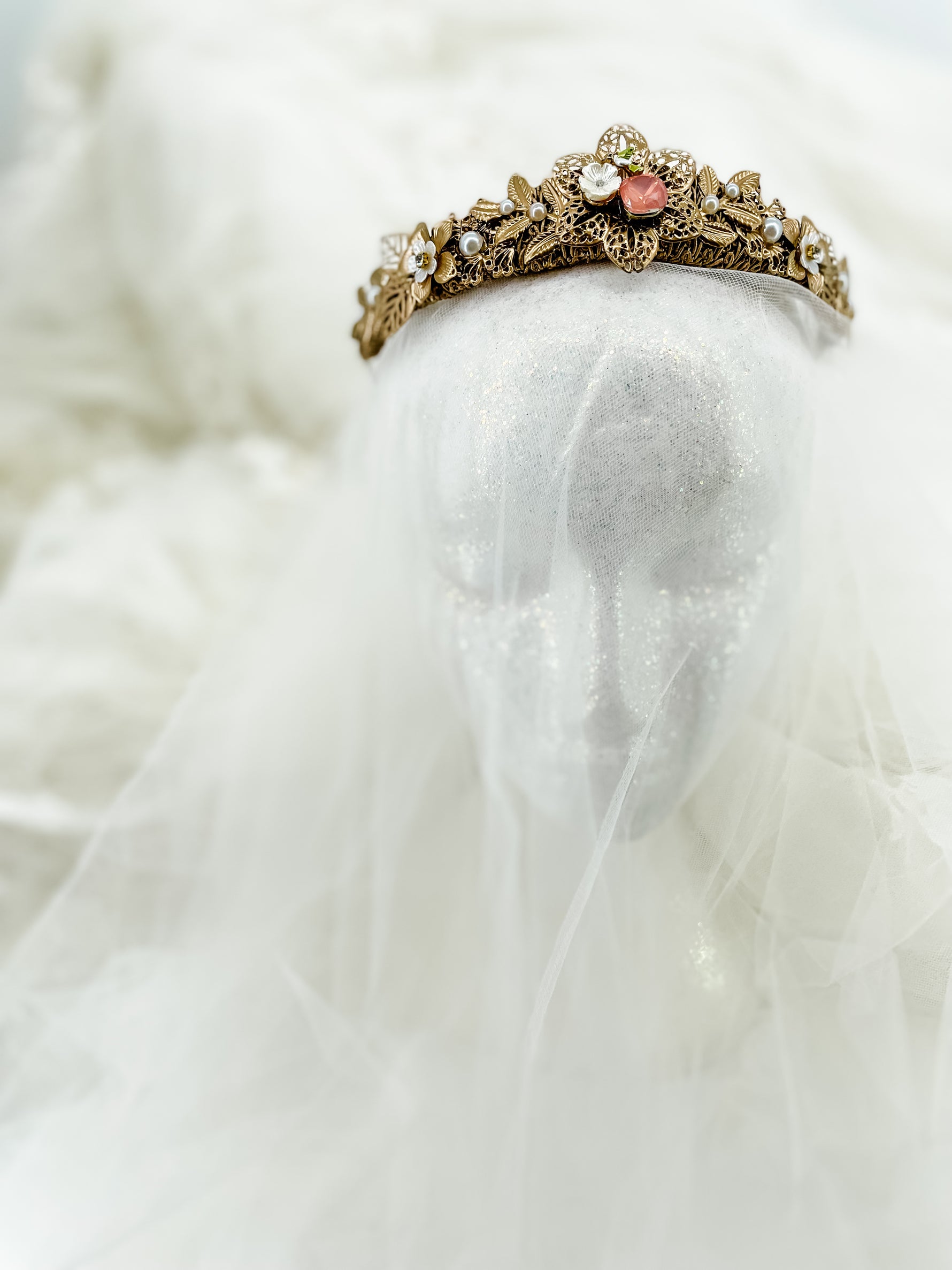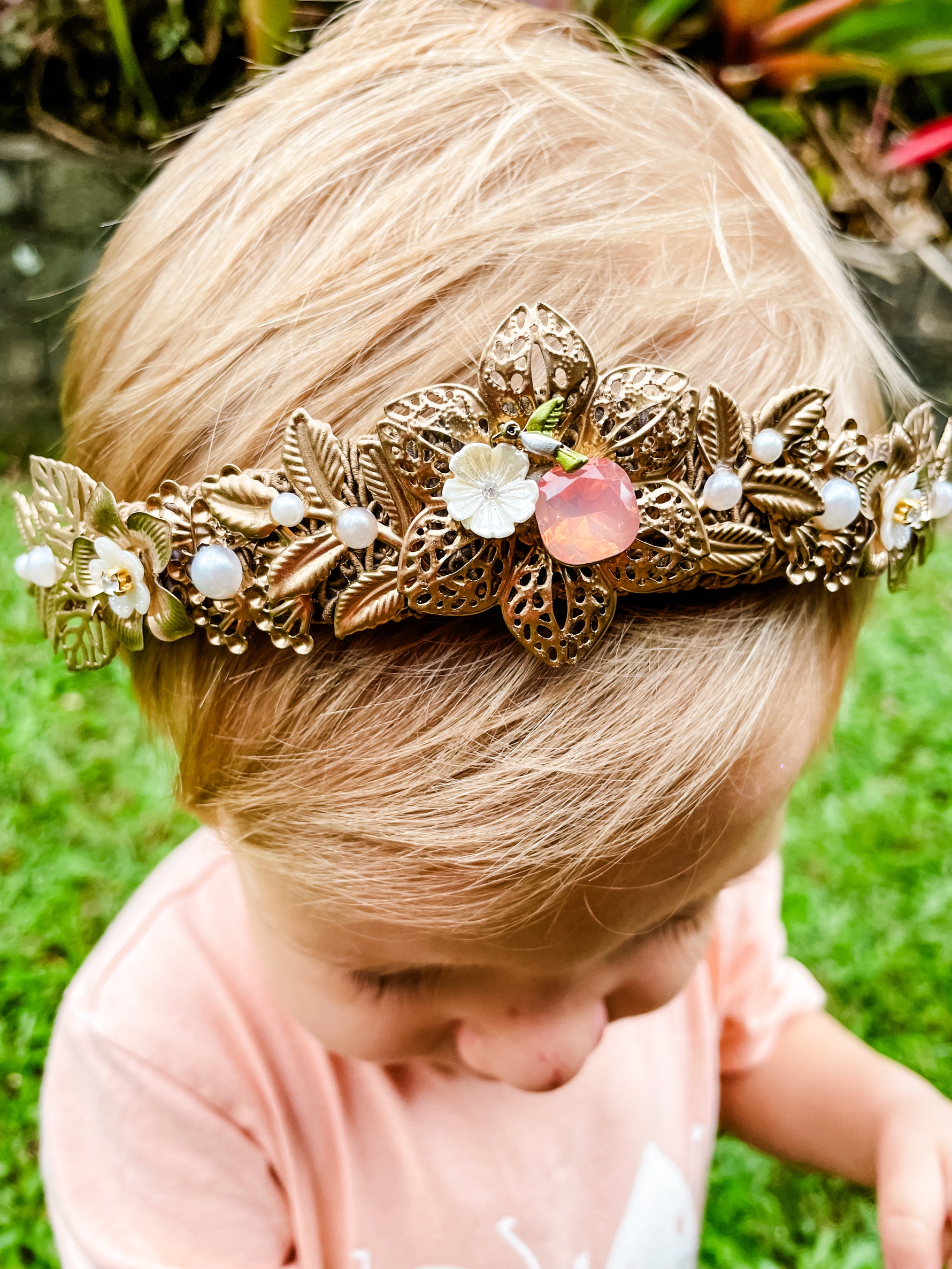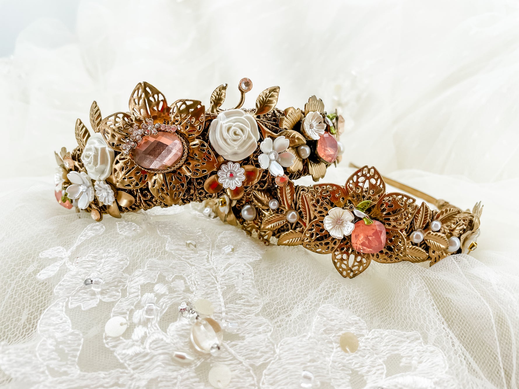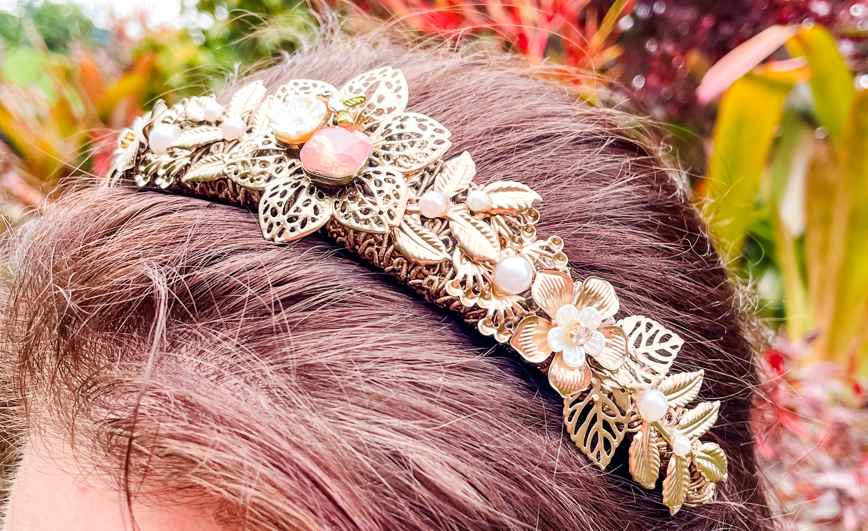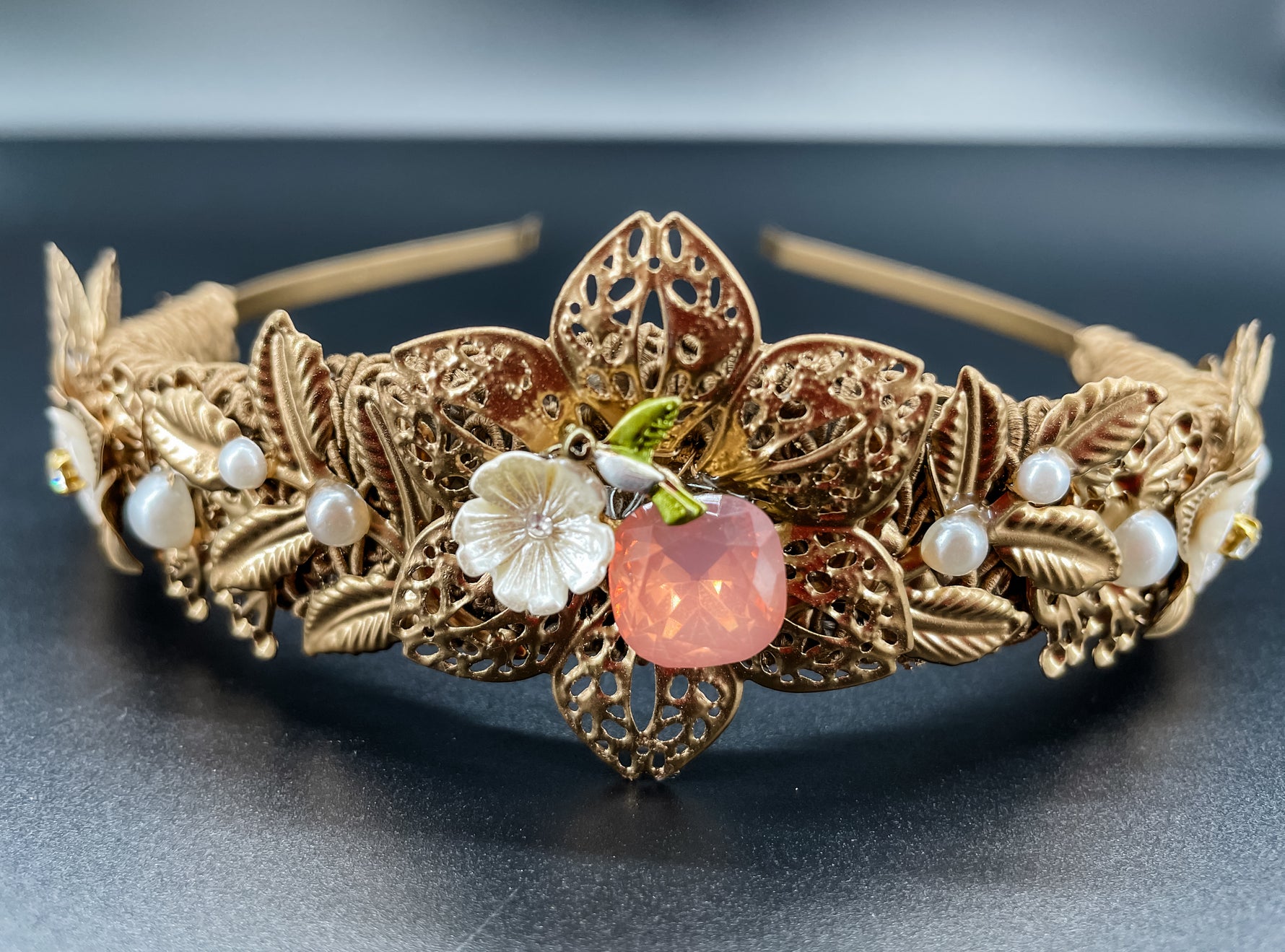Petit Peach Blossom Pearl Garland – Floral Statement Headpiece | Bridal, Fantasy Goddess & Luxe Occasion Hair Accessory