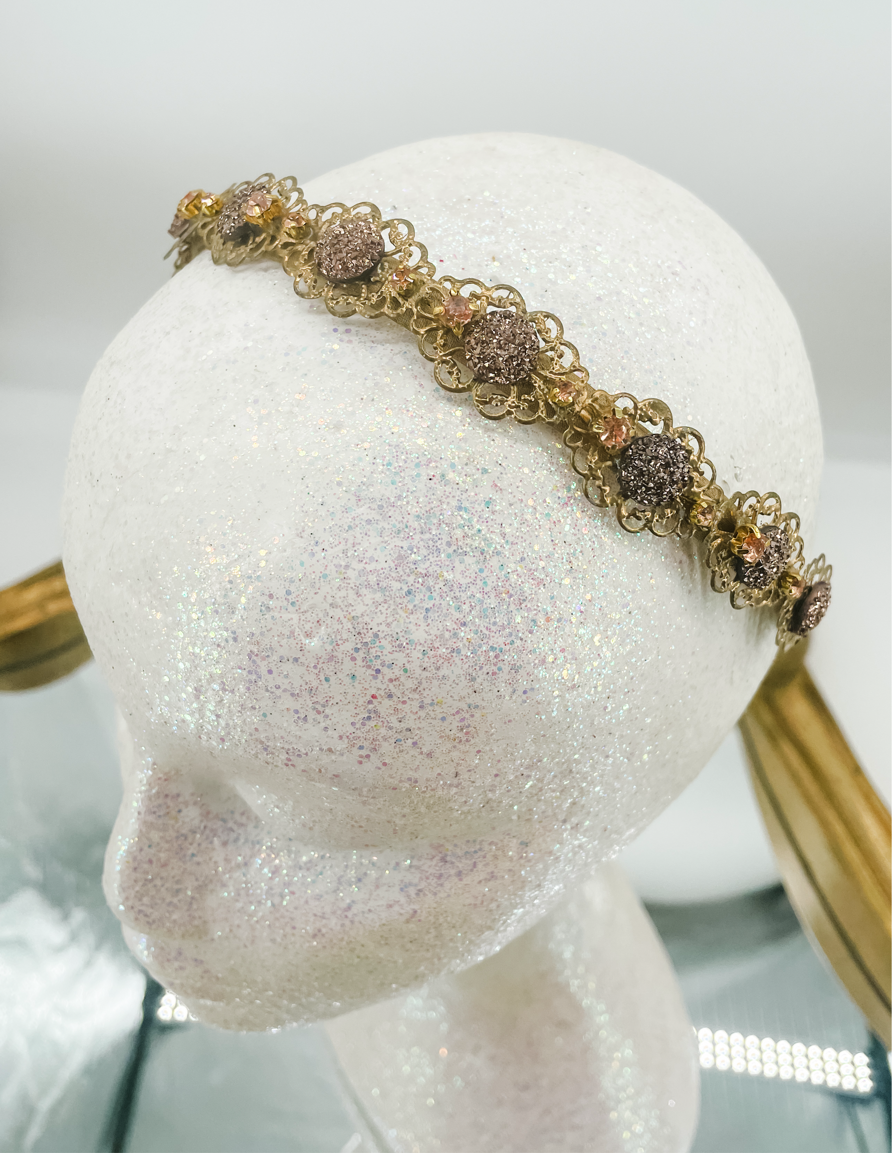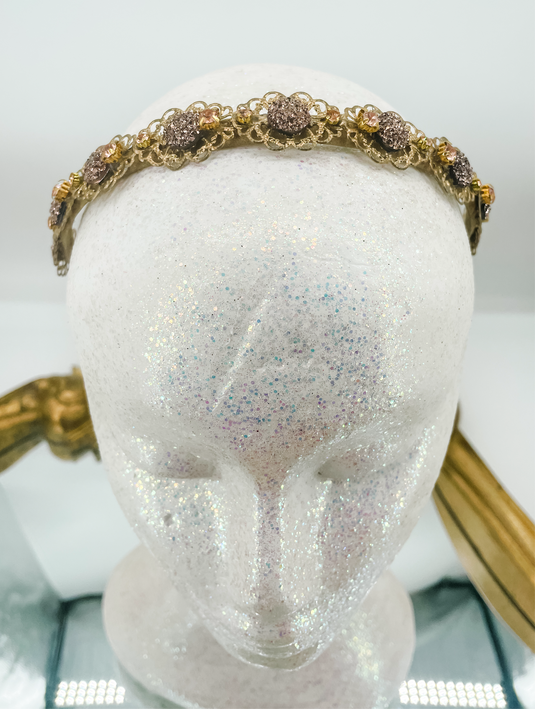 This enchanting golden toned filigree headpiece is the perfect accessory for a magnificent event, spectacular costume or fantastical photoshoot.