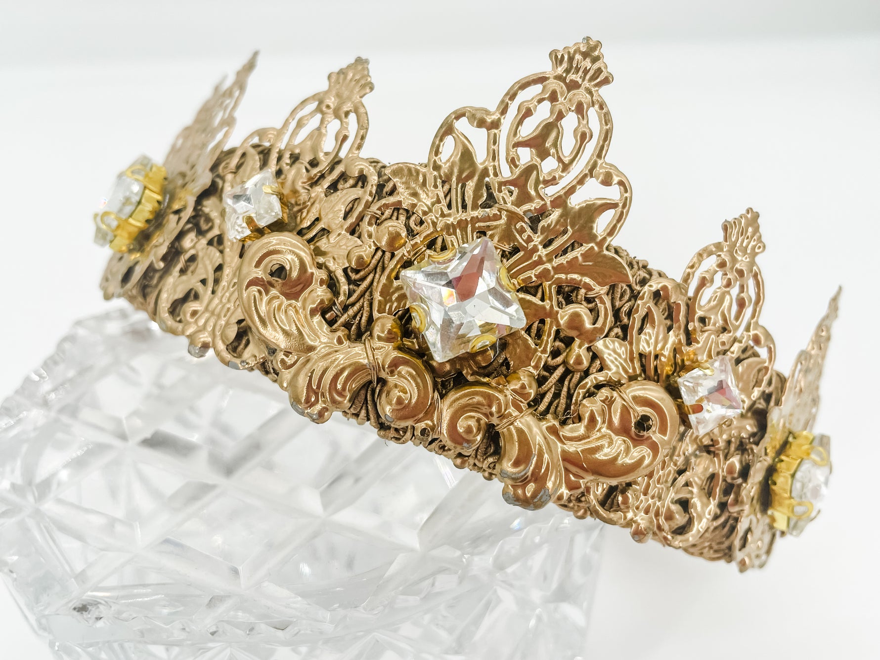 The light weight and flexible design, constructed with precision, hand stitched and secured with epoxy resin, ensures a perfect fit for any head size. Make a statement at special parties, gala events, or photo shoots with this unique and exclusive tiara.