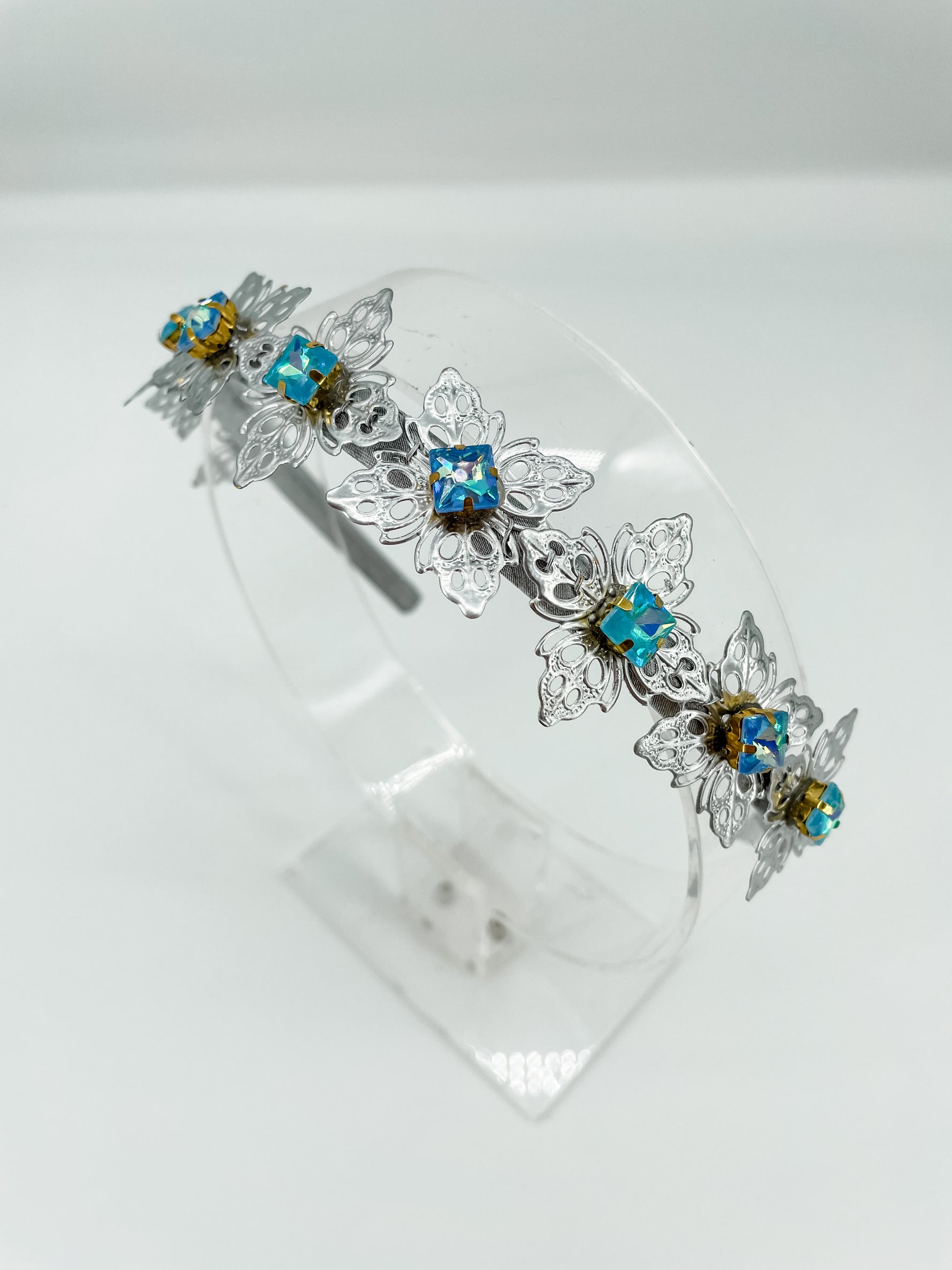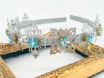 Silver Art Deco Glow Headband – Blue Princess Cut Crystal Statement Hair Accessory | Bridal, Fantasy & Luxe Occasion Glam