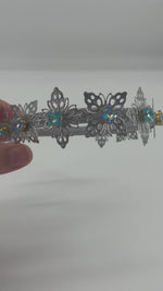 This enchanting silver toned filigree headpiece is the perfect accessory for a magnificent event, spectacular costume or fantastical photoshoot.